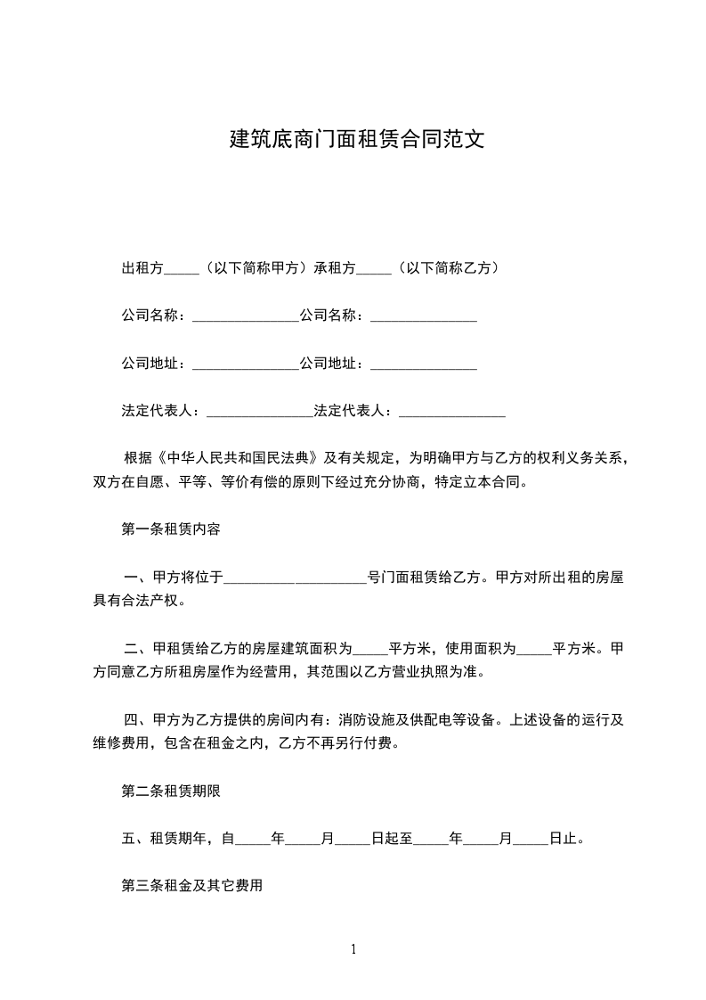 第一条租赁内容