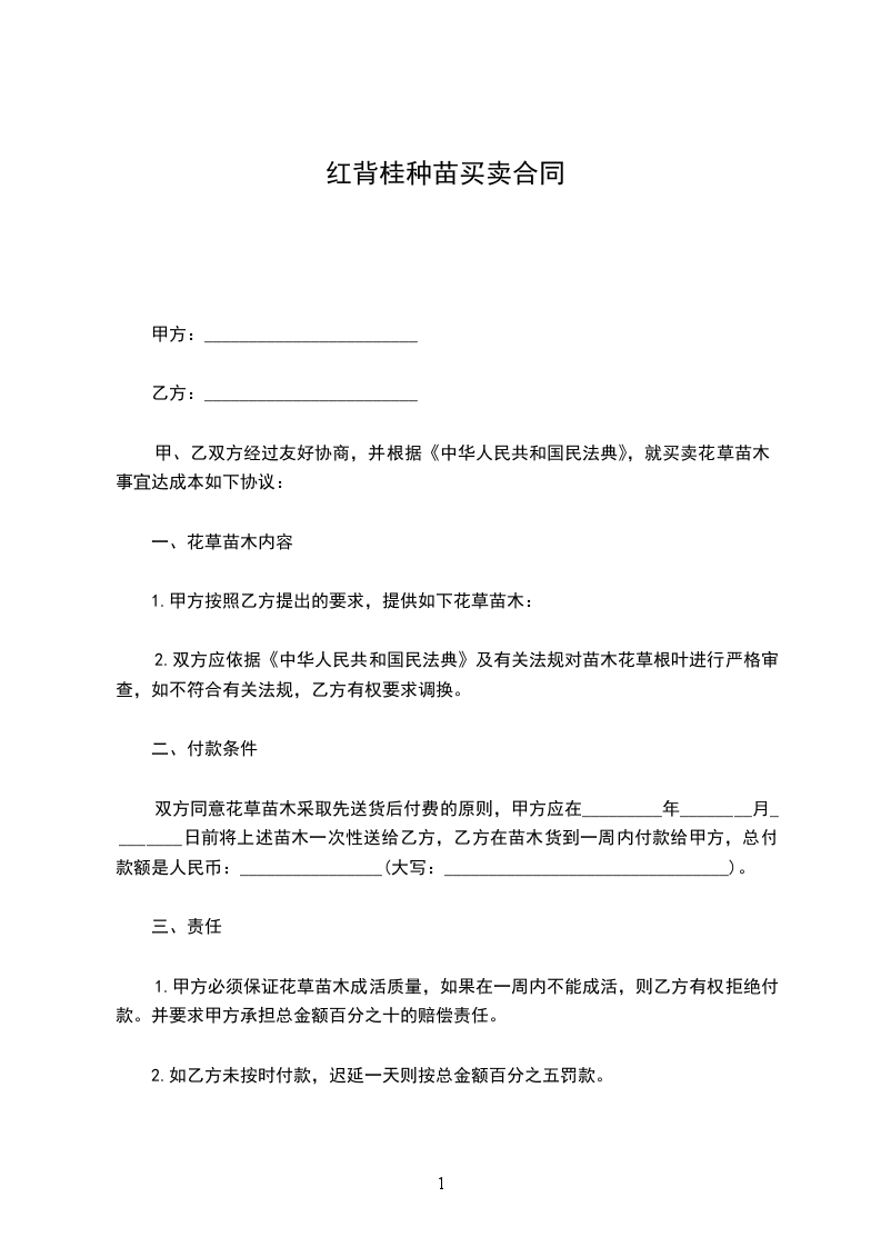 甲、乙双方经过友好协商,并根据《中华人民共和国民法典》,就买卖花草苗木事宜达成本如下协议: