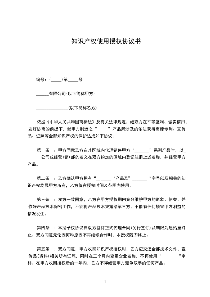 依据《中华人民共和国商标法》及有关法律规定,经双方在平等互利、诚实信用、友好协商的前提下,就甲方制造之“_____”产品所涉及的依法获得商标专利、宣传品、证照等全部知识产权的保护达成如下协议: