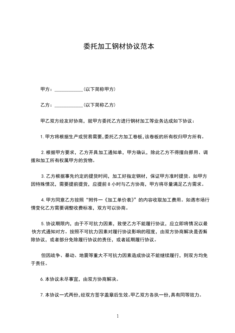 甲乙双方经友好协商,就甲方委托乙方进行钢材加工等业务达成如下协议: