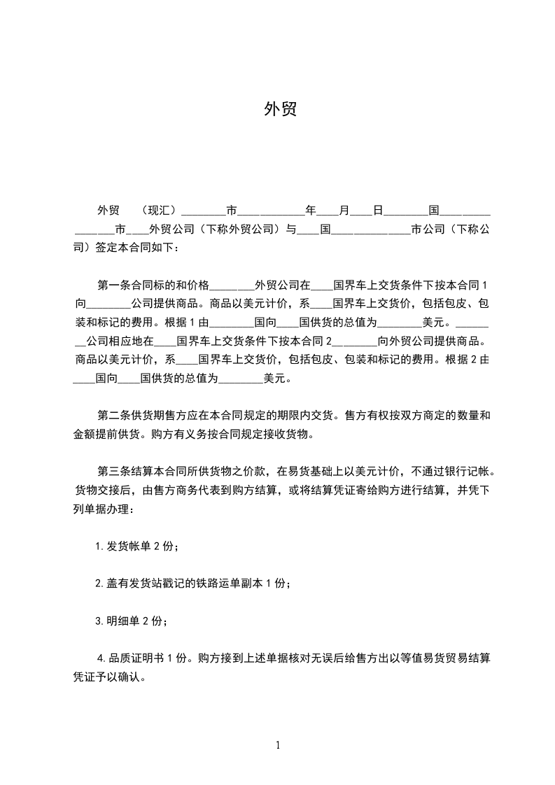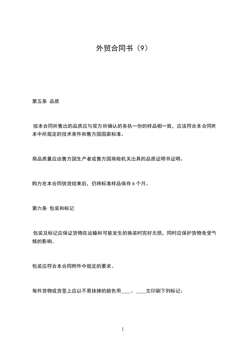 按本合同所售出的品质应与双方所确认的各执一份的样品相一致,应该符合本合同附本中所规定的技术条件和售方国国家标准。