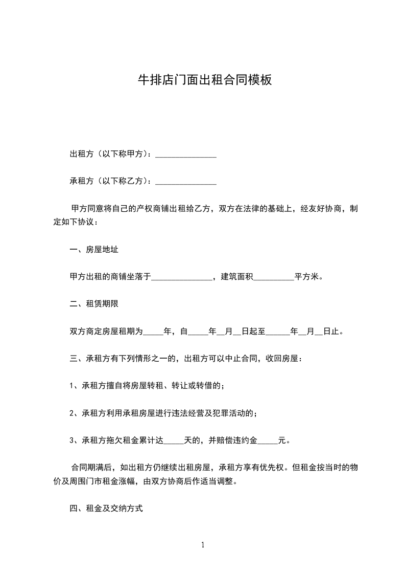 甲方出租的商铺坐落于_______________,建筑面积__________平方米。