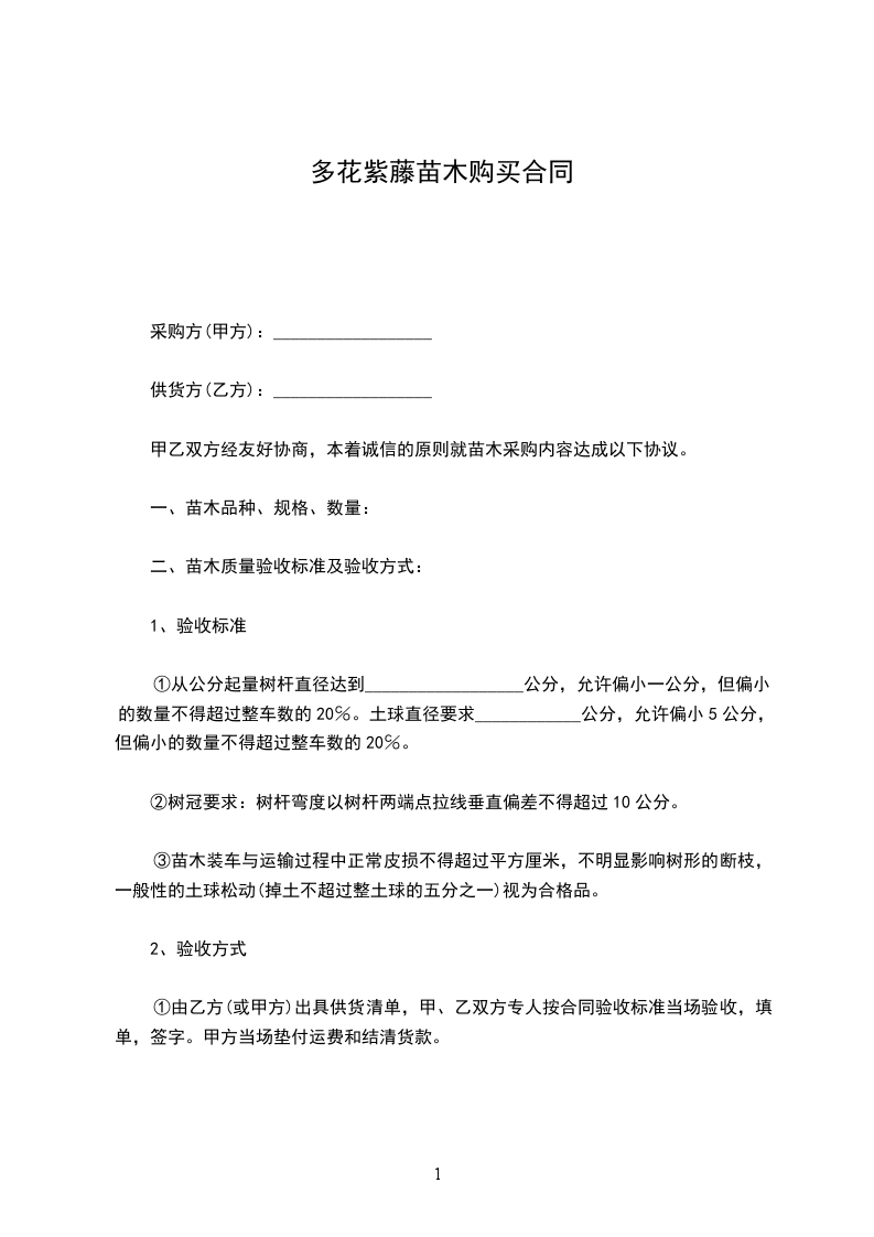 一、甲方所购苗木品种、规格、数量及价款详见合同附件《______工程苗木清单》(以下简称苗木采购清单)。