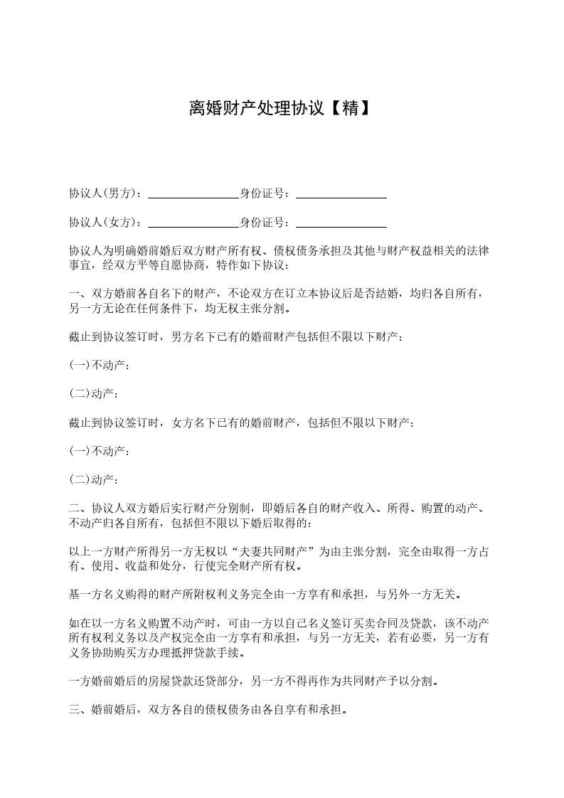 三、双方财产的处理: