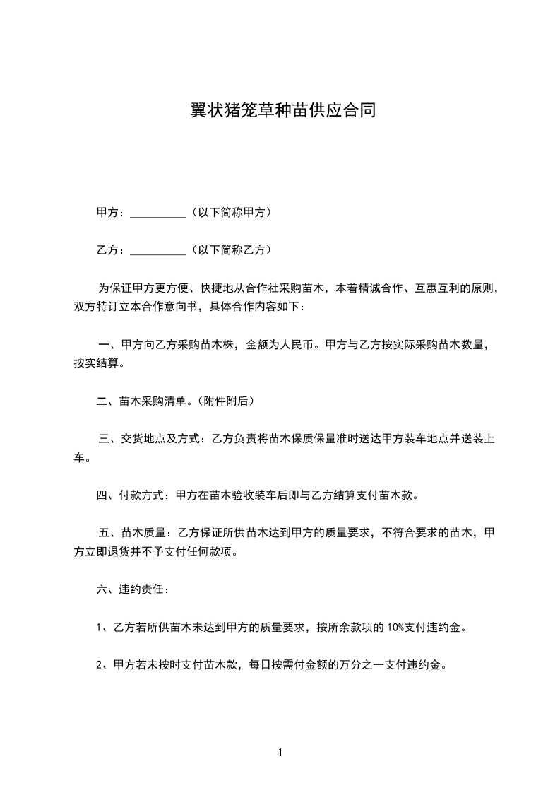 一、甲方向乙方采购苗木株,金额为人民币。甲方与乙方按实际采购苗木数量,按实结算。