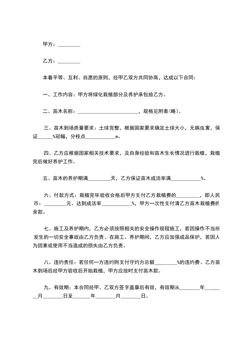 4.若一方终止合同,应向另一方赔偿经济损失。若遇天灾苗木损失严重,则甲方在提苗木前2个月通知乙方按比例缩减。