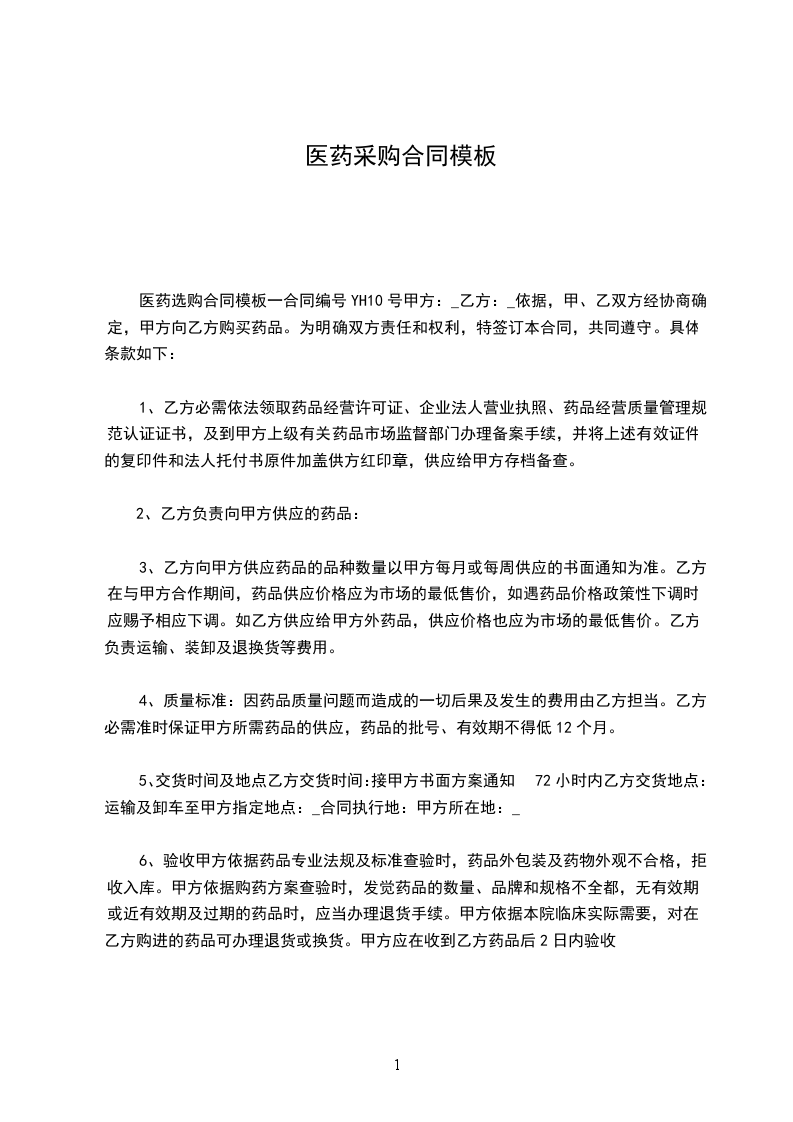 根据《民法典》,甲、乙双方经协商确定,甲方向乙方购买药品。为明确双方责任和权利,特签订本合同,共同遵守。具体条款如下: