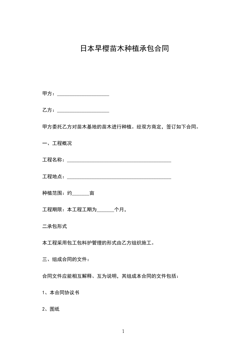 一、甲方向乙方采购苗木株,金额为人民币甲方与乙方按实际采购苗木数量,按实结算。