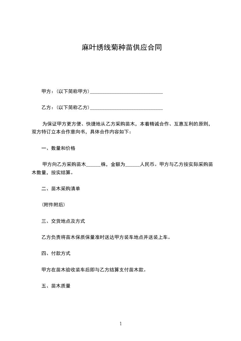 麻叶绣线菊苗木供应合同