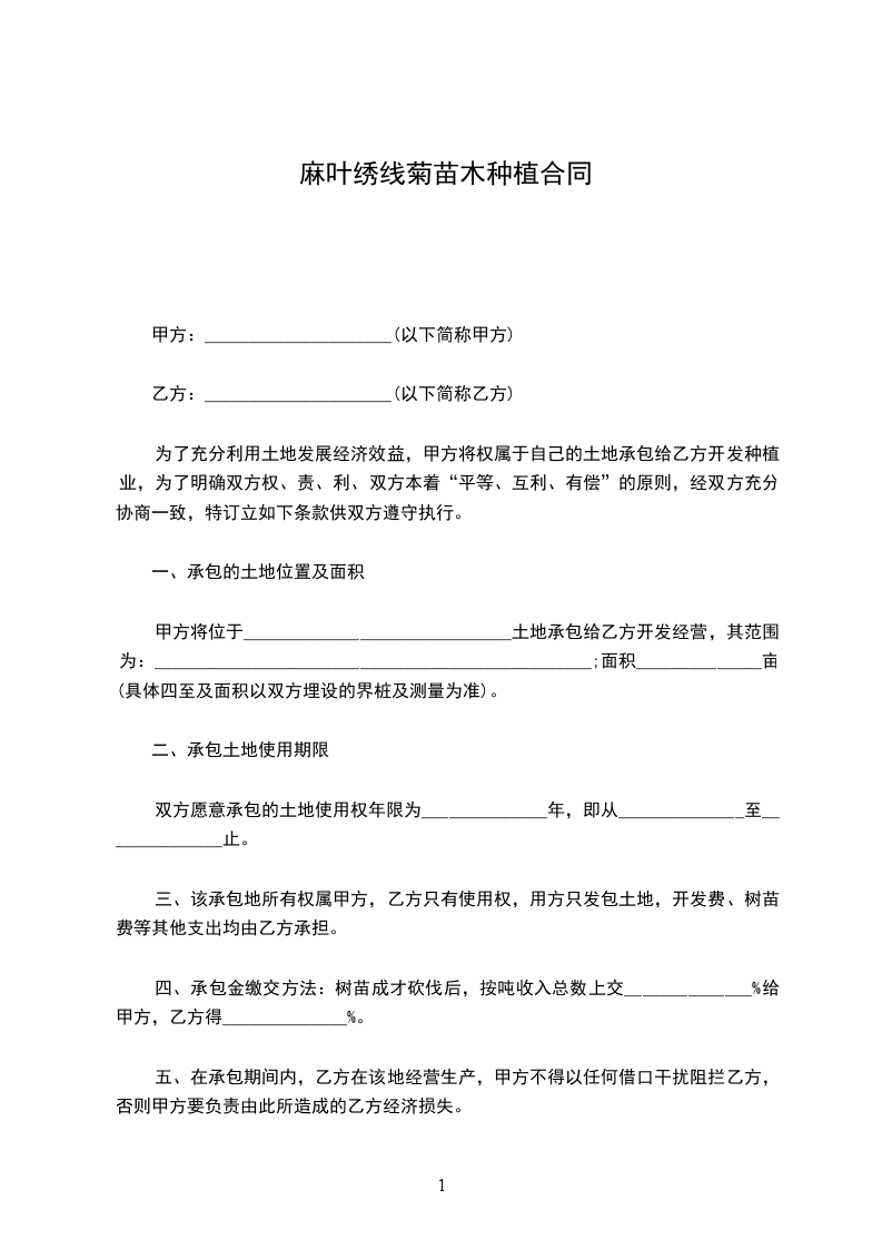 甲方因造林需要,拟购买一批苗木,经过对乙方场综合考察,甲方决定向乙方定购部分苗木,经双方共同协商,达成如下协议: