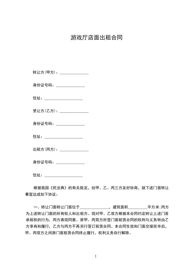 根据我国《民法典》的有关规定,经甲、乙、丙三方友好协商,就下述门面转让事宜达成如下协议: