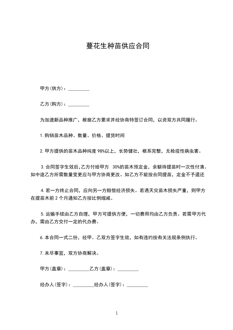 为加速新品种推广,根据乙方要求并经协商特签订合同,以资双方共同履行。
