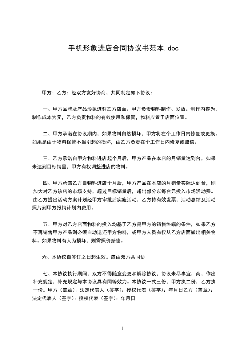 一、甲方品牌及产品形象进驻乙方店面。甲方负责物料制作、发放。制作内容为__________________,制作成本为_________元,乙方负责物料的有效使用和保管,物料应置于店面位置__________________。