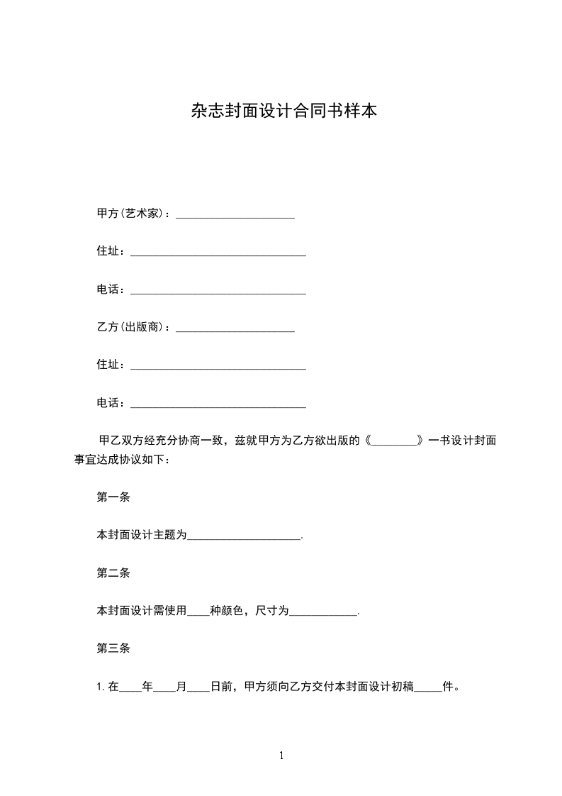 1.在____年____月____日前,甲方须向乙方交付本封面设计初稿_____件。
