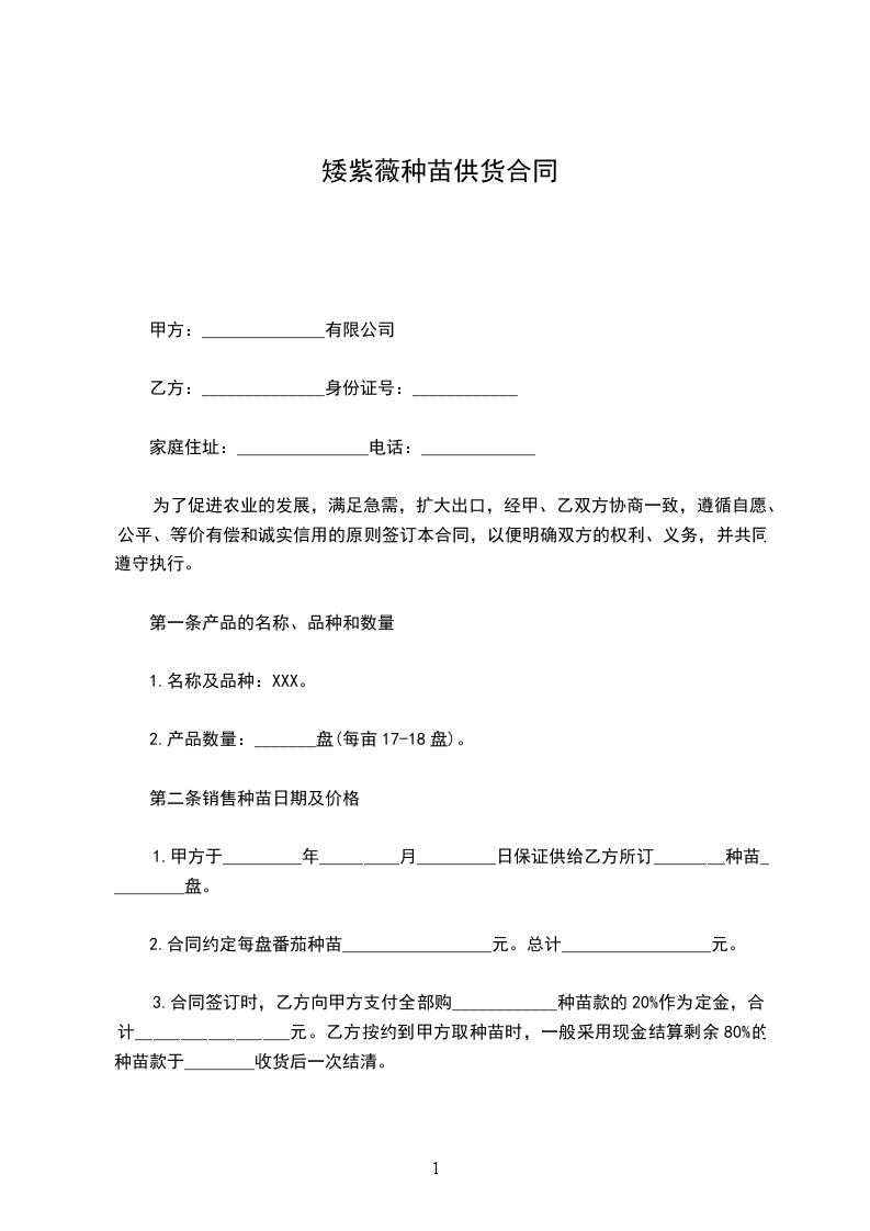 矮紫薇种苗购买合同