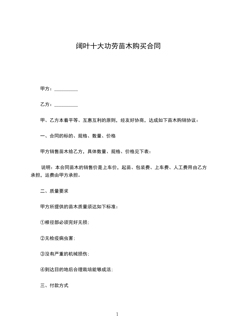 1、甲方应按合同规定的时间和质重,提供给乙方所需的苗木,保证不提供假苗。