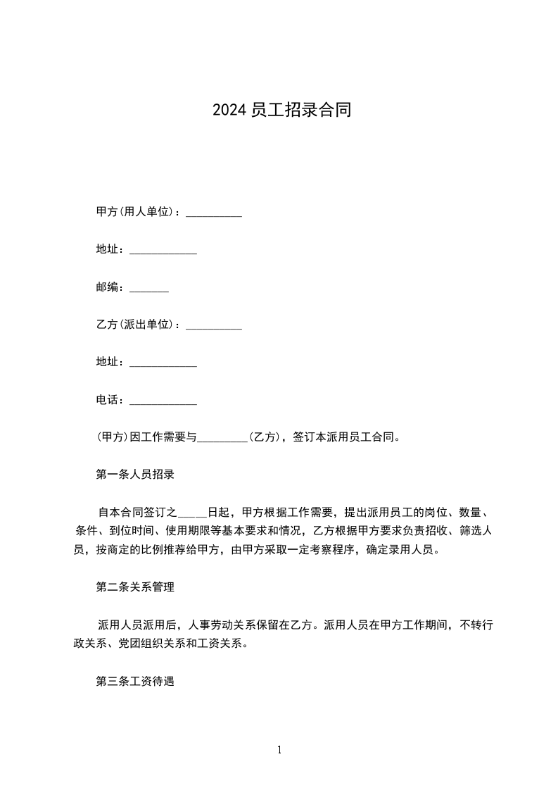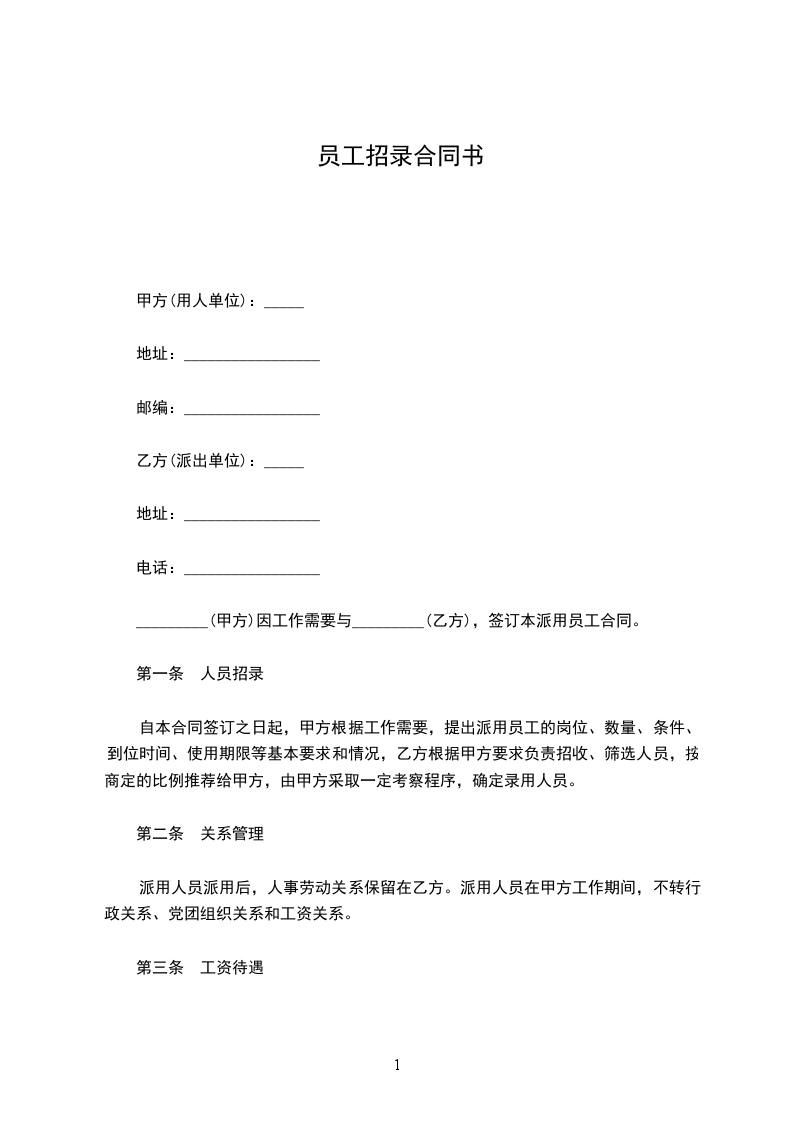 _________(甲方)因工作需要与_________(乙方),签订本派用员工合同。