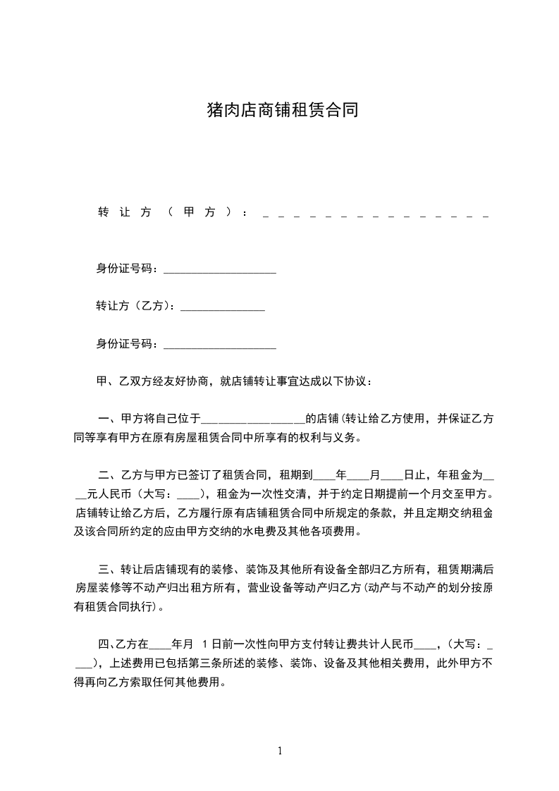 猪肉店商铺租赁合同