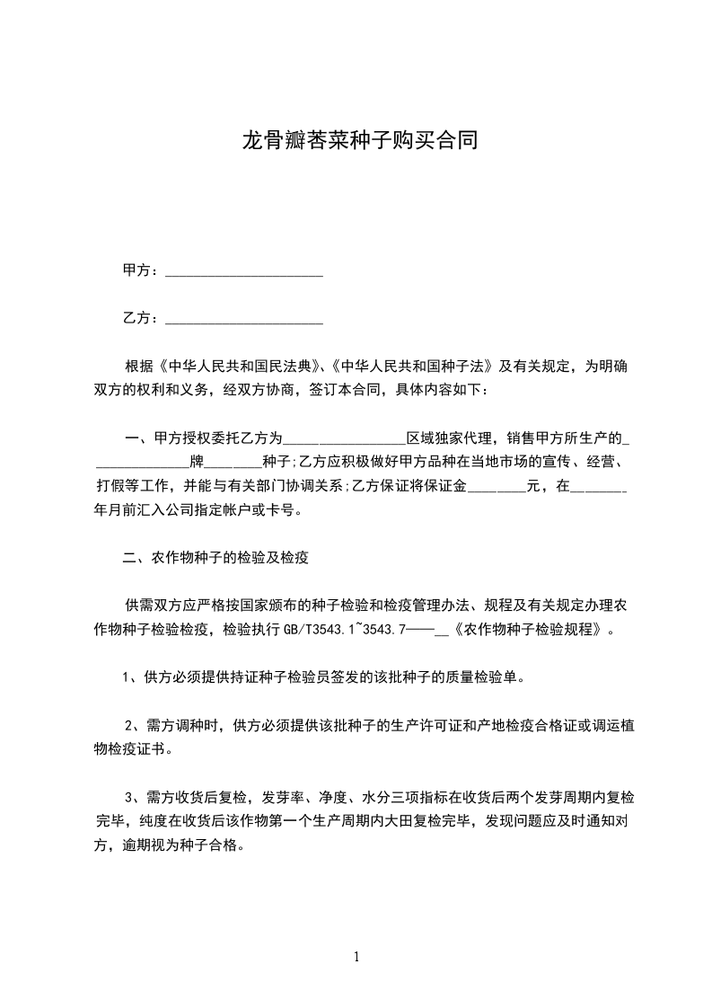 莕菜种苗购买合同
