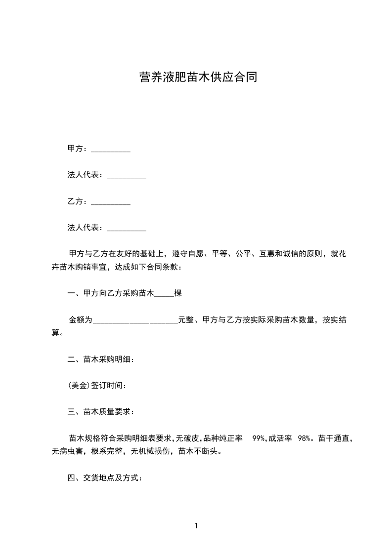 一、甲方向乙方采购苗木_____棵