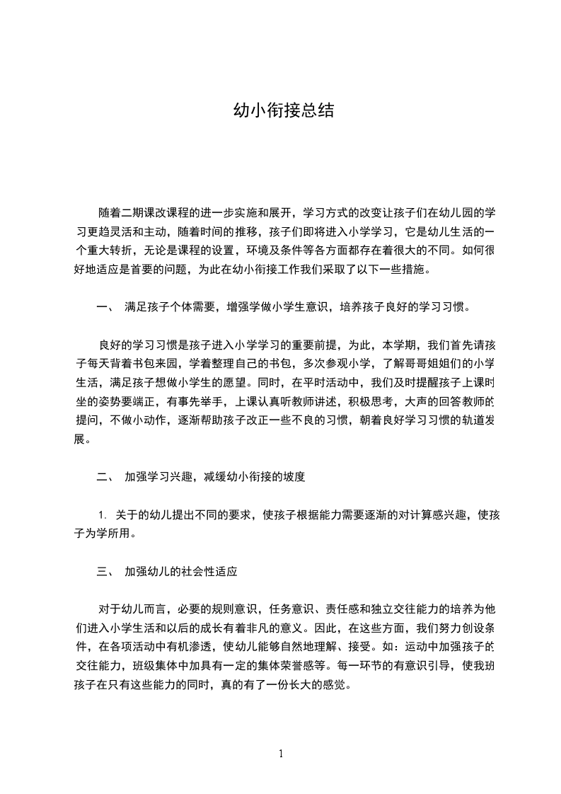 总之,通过一学期来对幼儿幼小衔接的培养,为其能顺利的进入小学打下一定的基础,但同时也有一些不足之处不可避免的存在着。相信,通过以后的不断的努力和实践肯定会不断的完善。