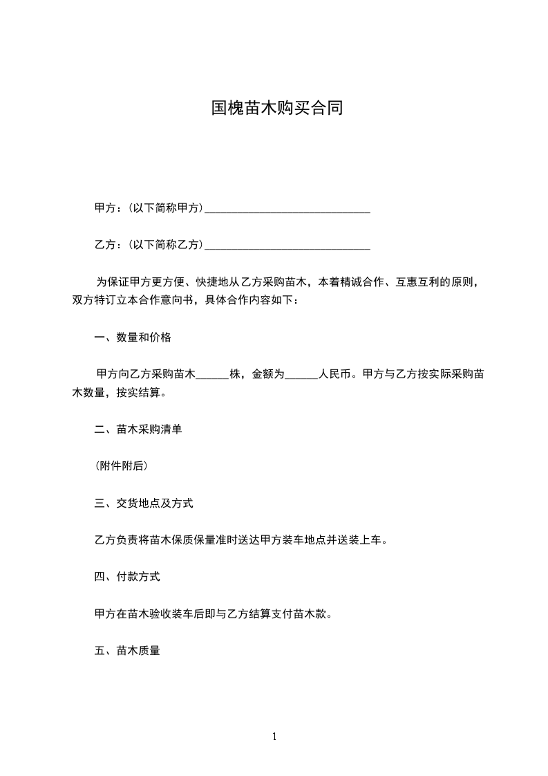 甲方向乙方采购苗木______株,金额为______人民币。甲方与乙方按实际采购苗木数量,按实结算。