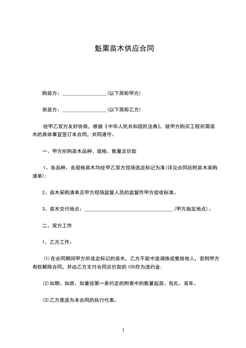 供苗方:__________________(以下简称乙方)