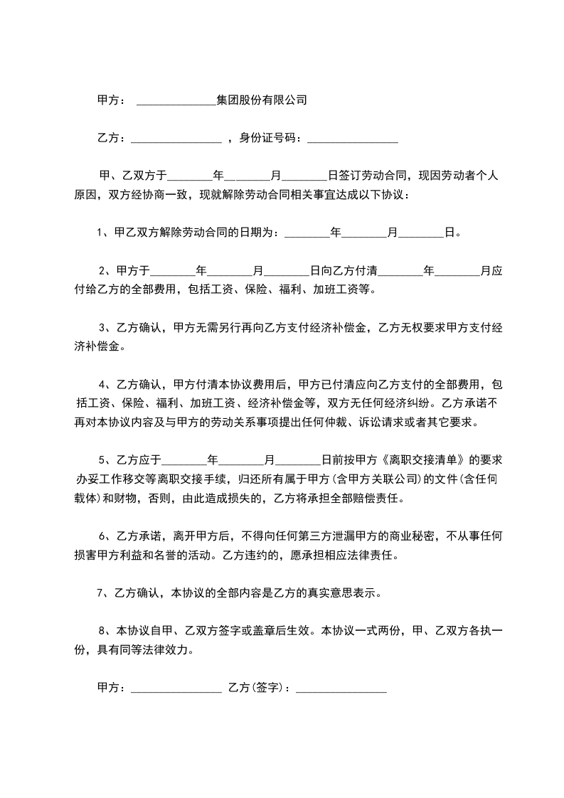 解除合同主要原因:_____________________________________