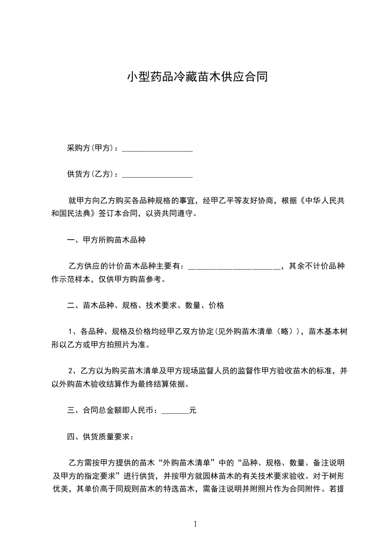 乙方供应的计价苗木品种主要有:_______________________,其余不计价品种作示范样本,仅供甲方购苗参考。