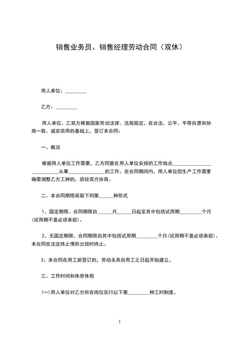 1、固定期限。合同期限自______月______日起至其中包括试用期_________个月(试用期不是必须条款)。