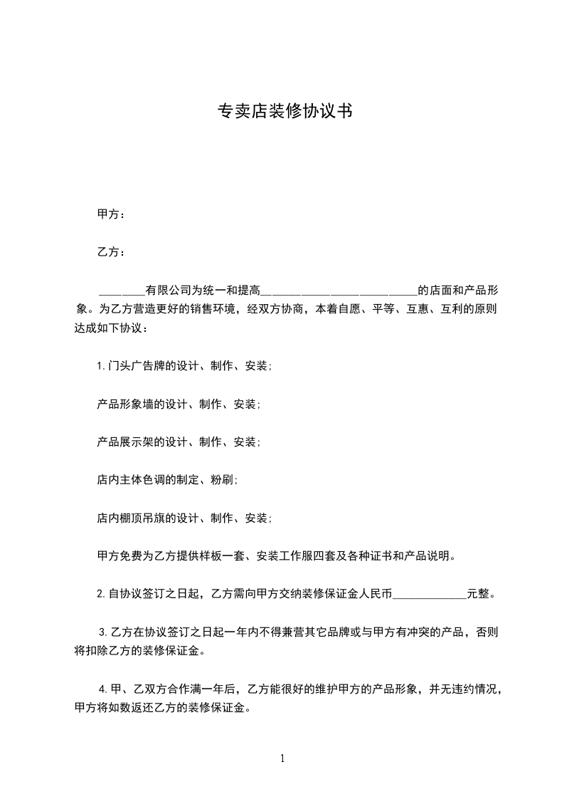 一、甲方委托并授权乙方管理的__________专卖店(专柜)。除此之外,乙方不得在其它地区开设店铺经营甲方产品。