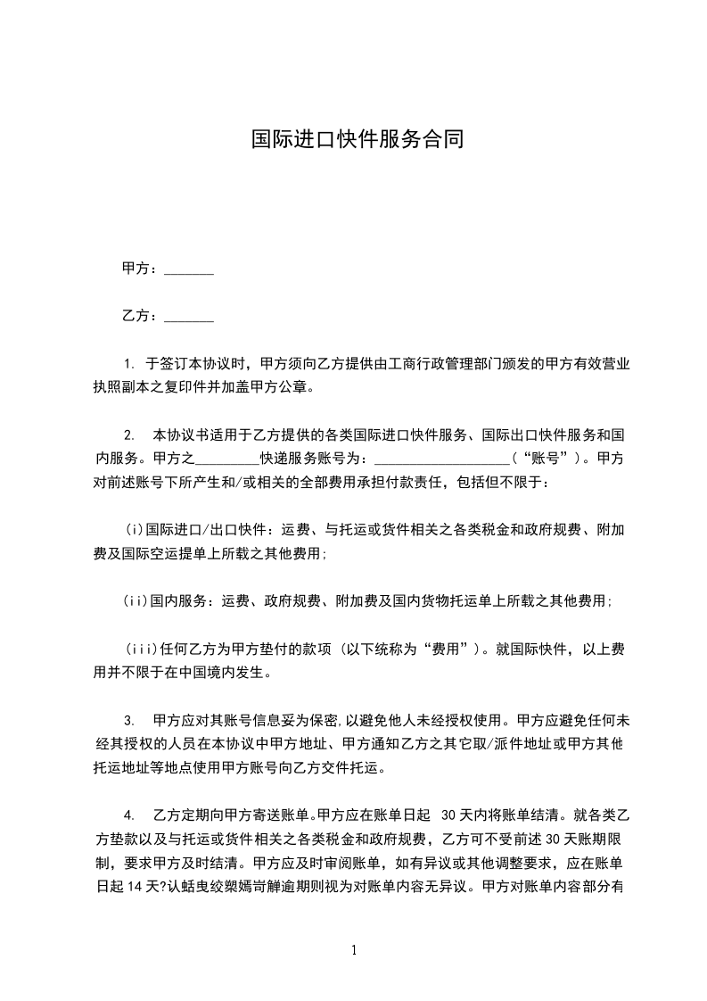 1.1 “辅配件”指大量商用可购买到的材料,包括易耗品和其它与__________系统安装和系统配套有关的元部件,可由________厂或转让方提供。