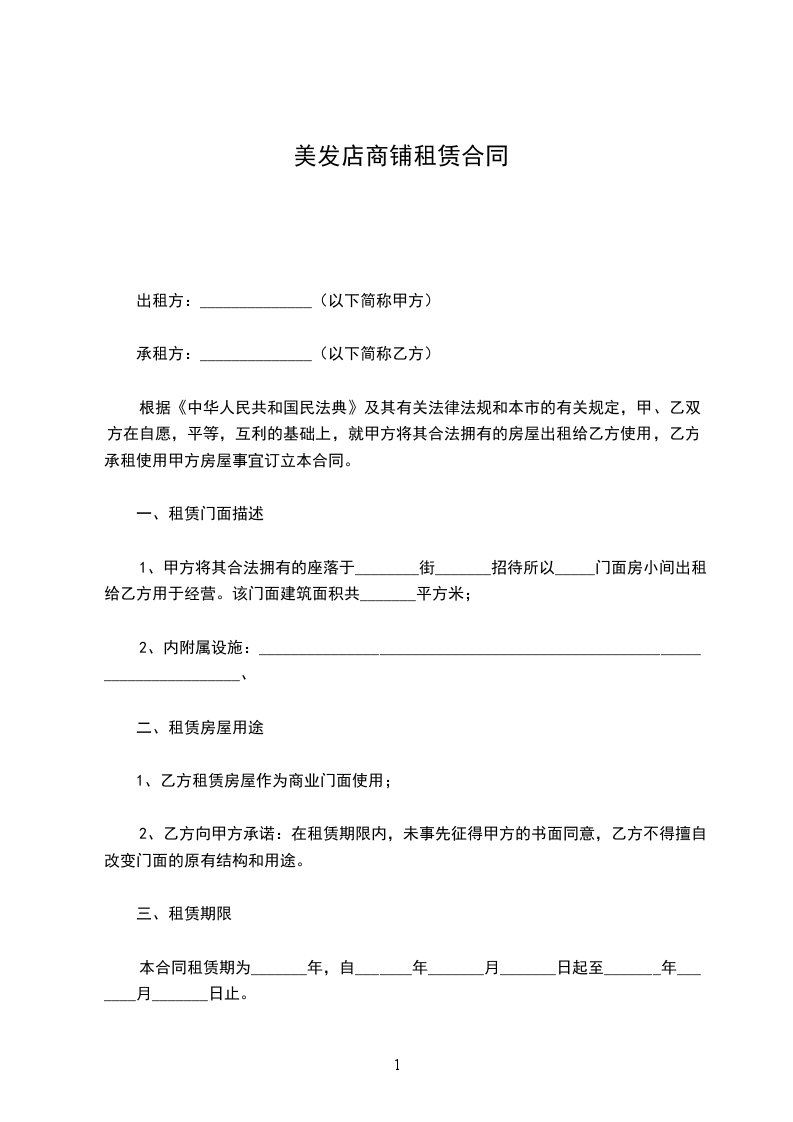 1、乙方租赁房屋作为商业门面使用;