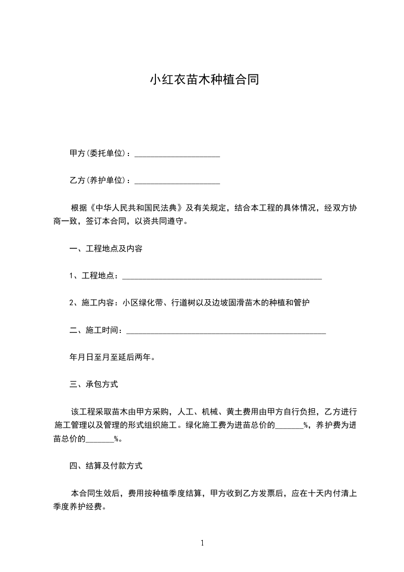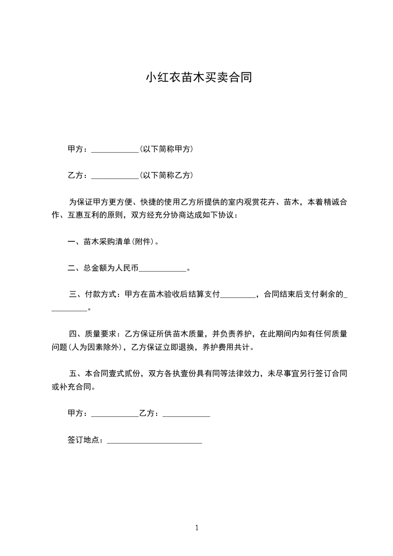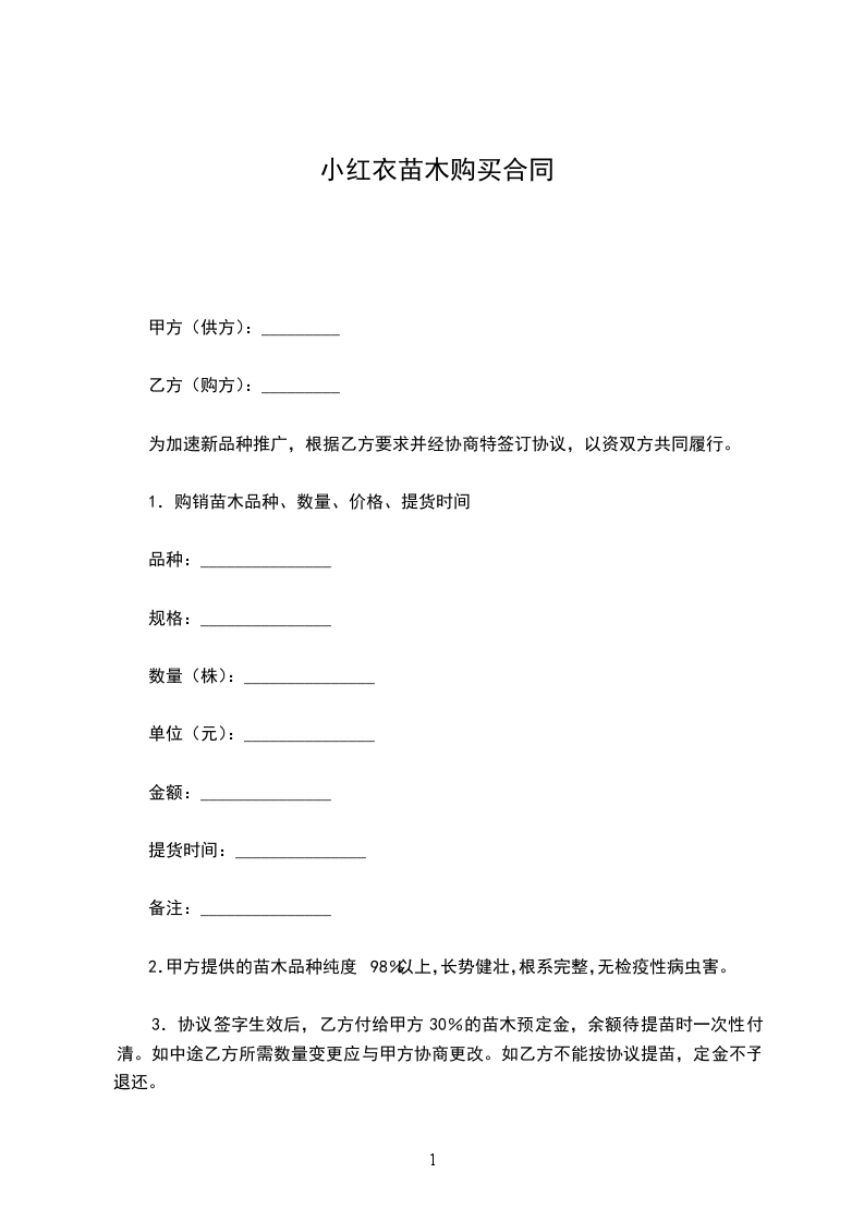 小红衣苗木购买合同