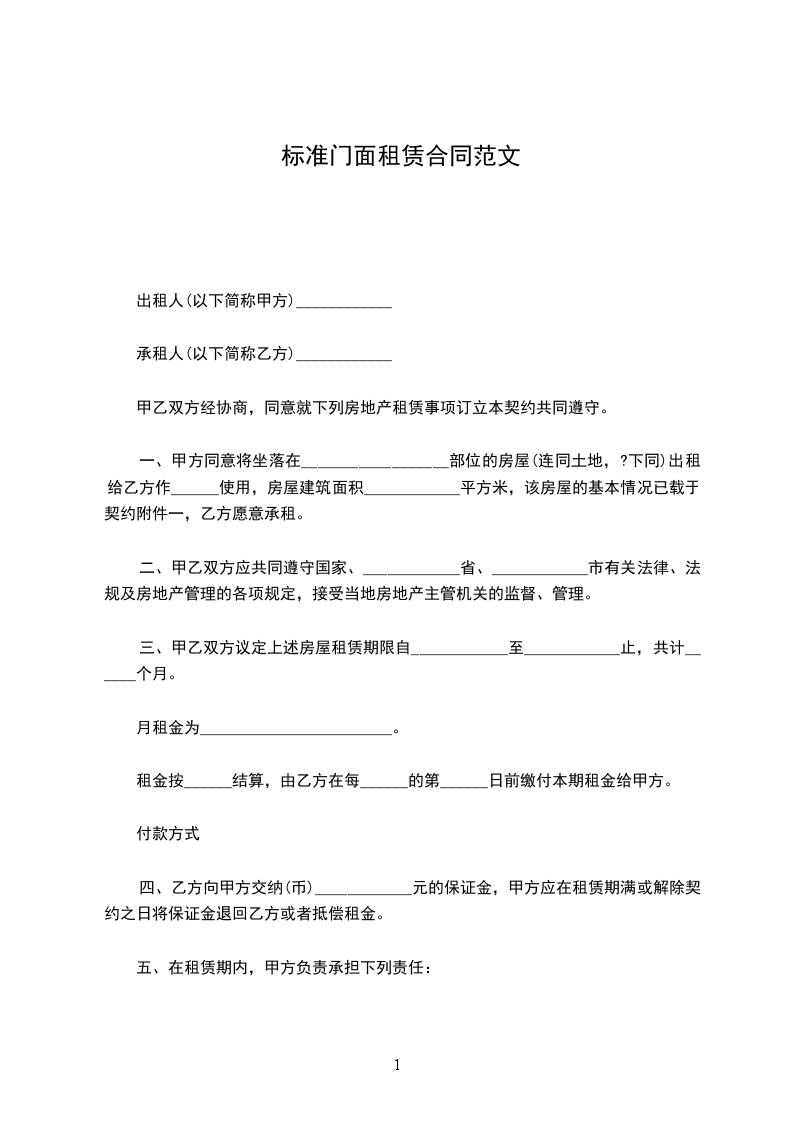 五、在租赁期内,甲方负责承担下列责任: