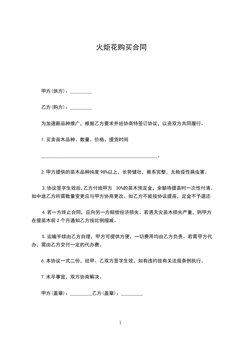 购苗方:________________(以下简称甲方)