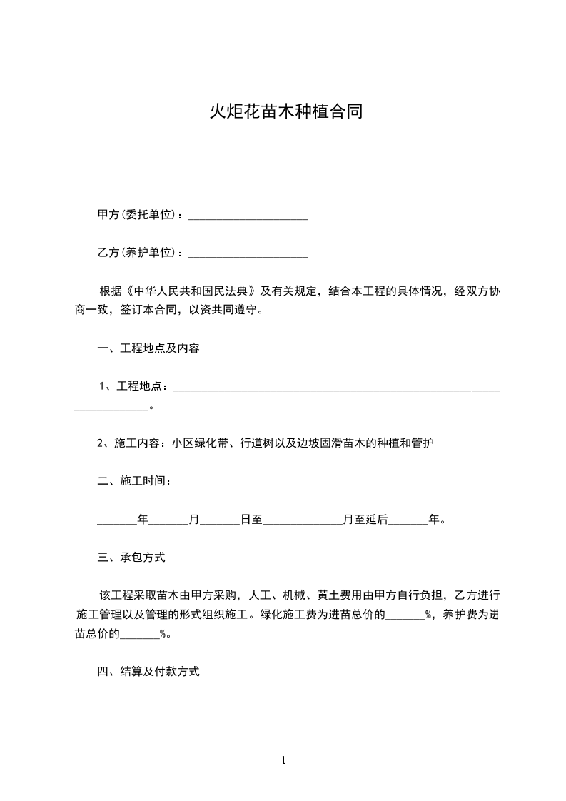 经甲乙双方友好协商,根据《中华人民共和国民法典》,就甲方购买工程所需苗木的具体事宜签订本合同,共同遵守。