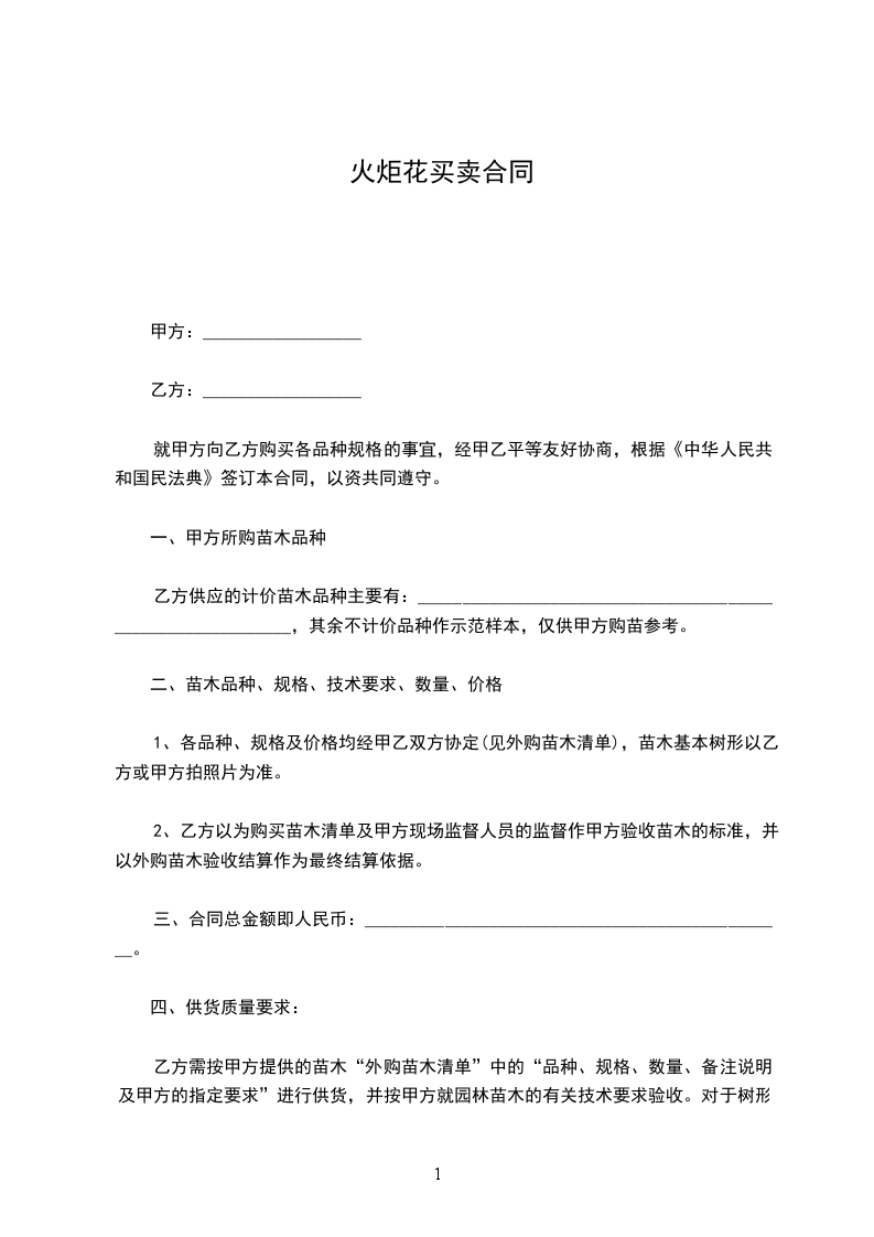 供苗方:________________(以下简称乙方)