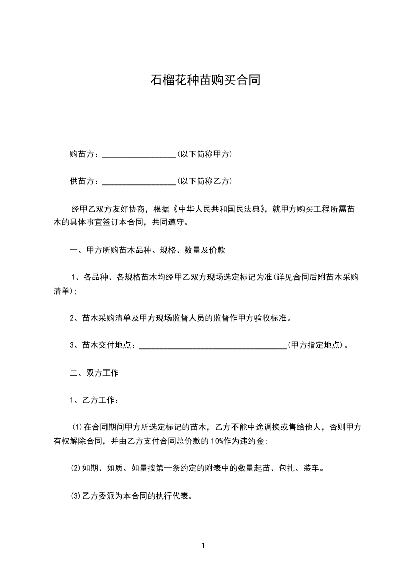 供苗方:__________________(以下简称乙方)