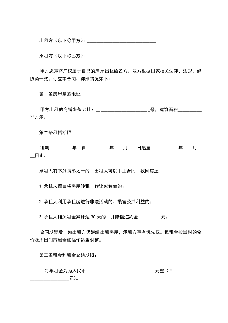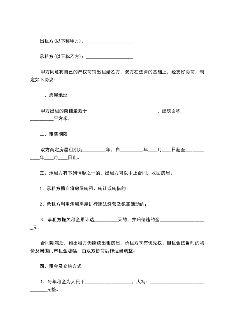 甲方出租的商铺坐落地址:_______________号,建筑面积_____平方米。