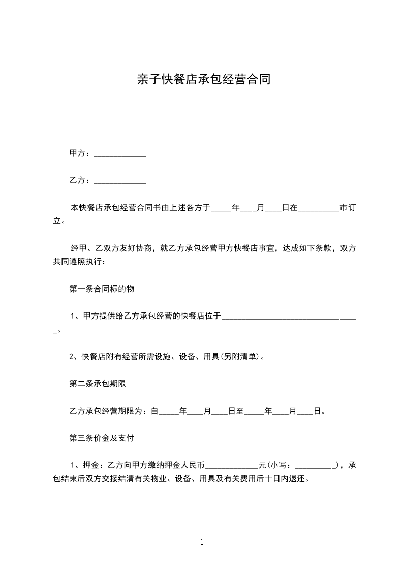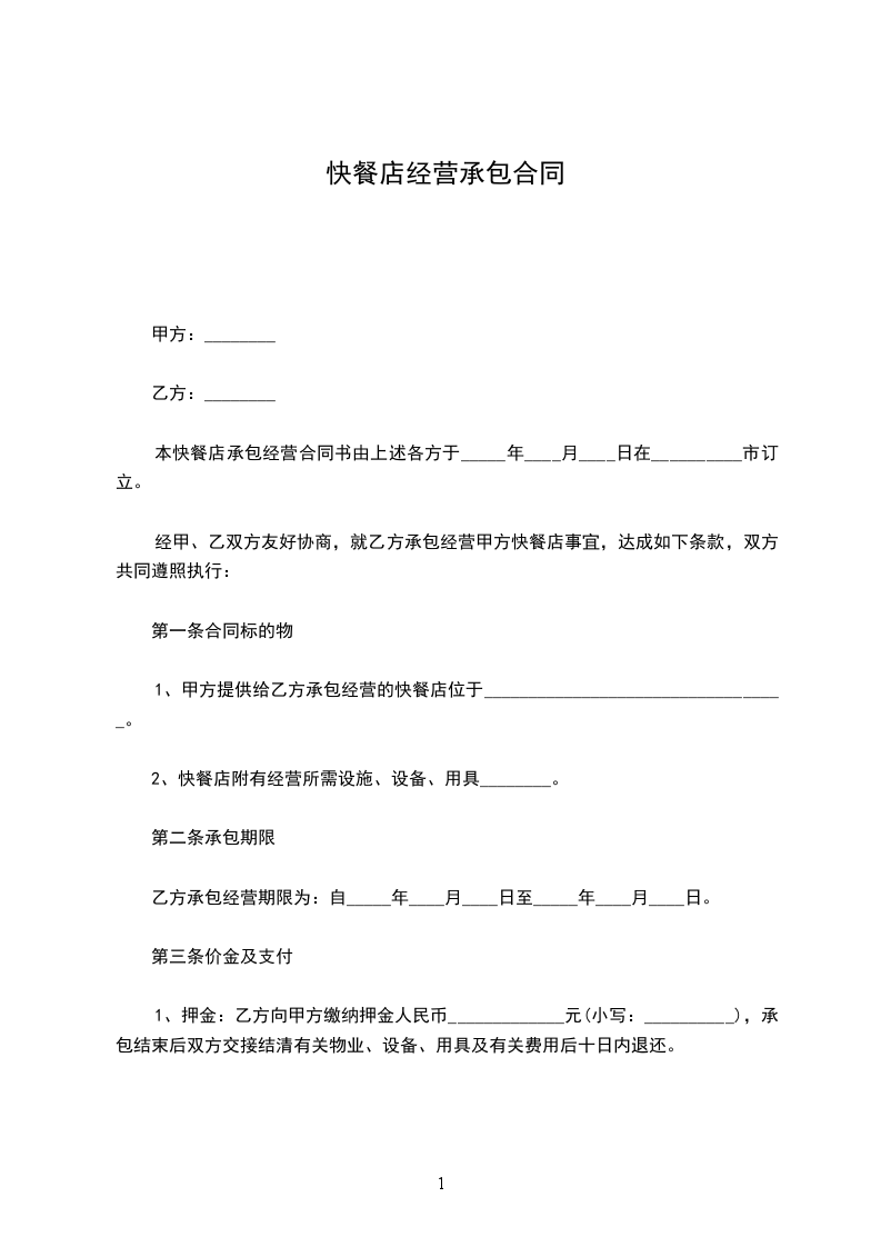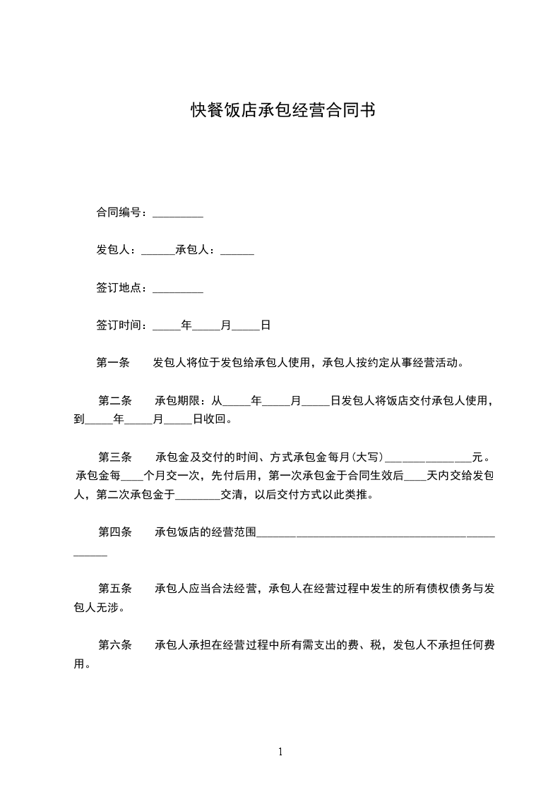 本快餐店承包经营合同书由上述各方于_____年____月____日在__________市订立。