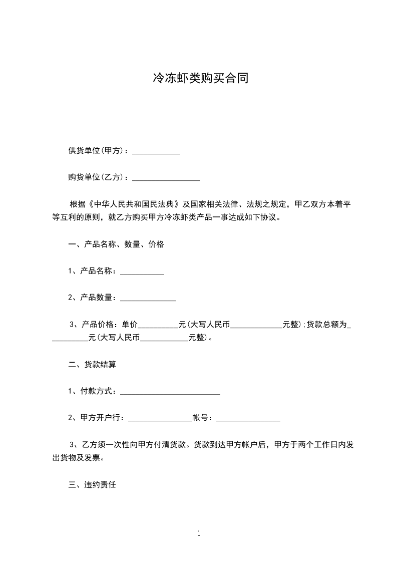 根据《中华人民共和国民法典》及国家相关法律、法规之规定,甲乙双方本着平等互利的原则,就乙方购买甲方冷冻虾类产品一事达成如下协议。