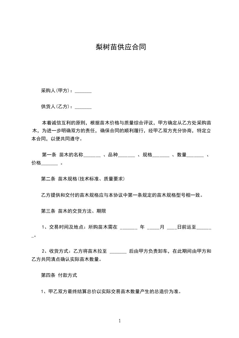 一、甲方向乙方采购苗木_____棵