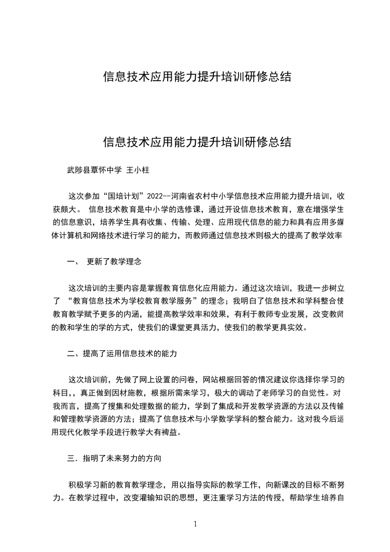 信息技术应用能力提升培训研修总结 1300字