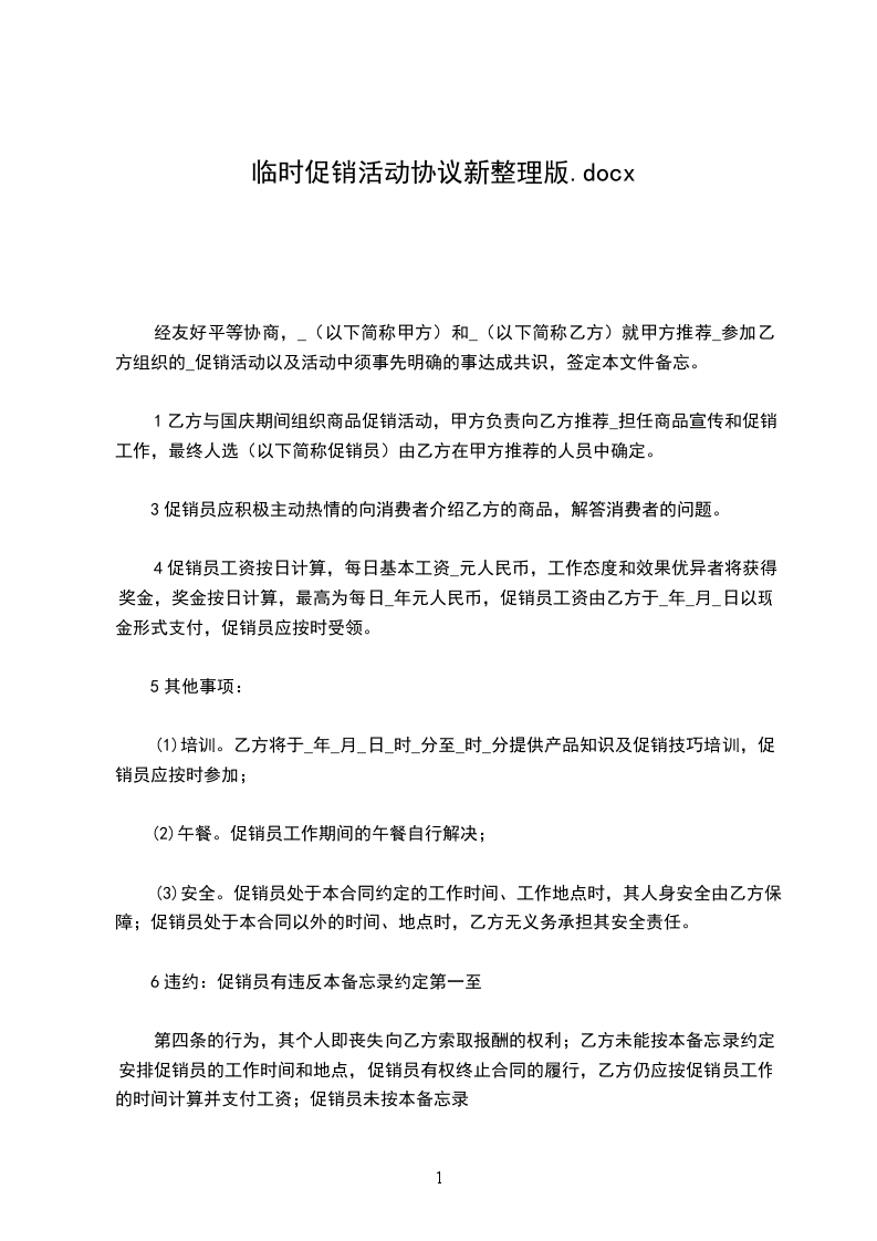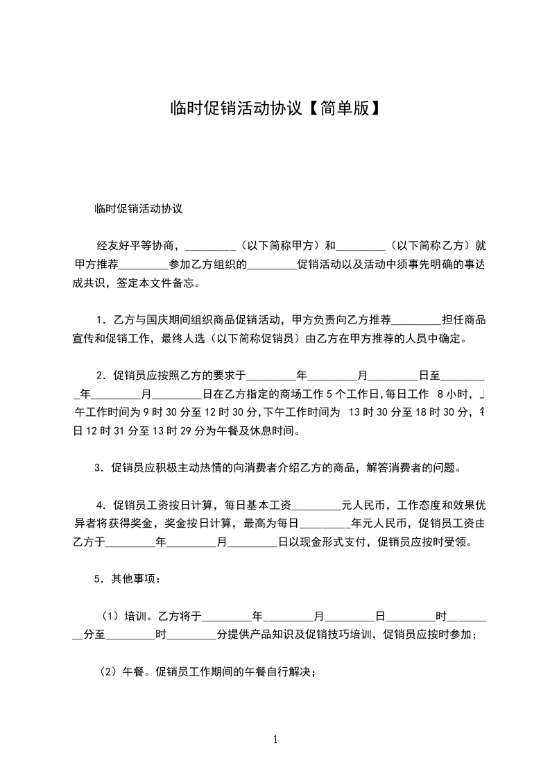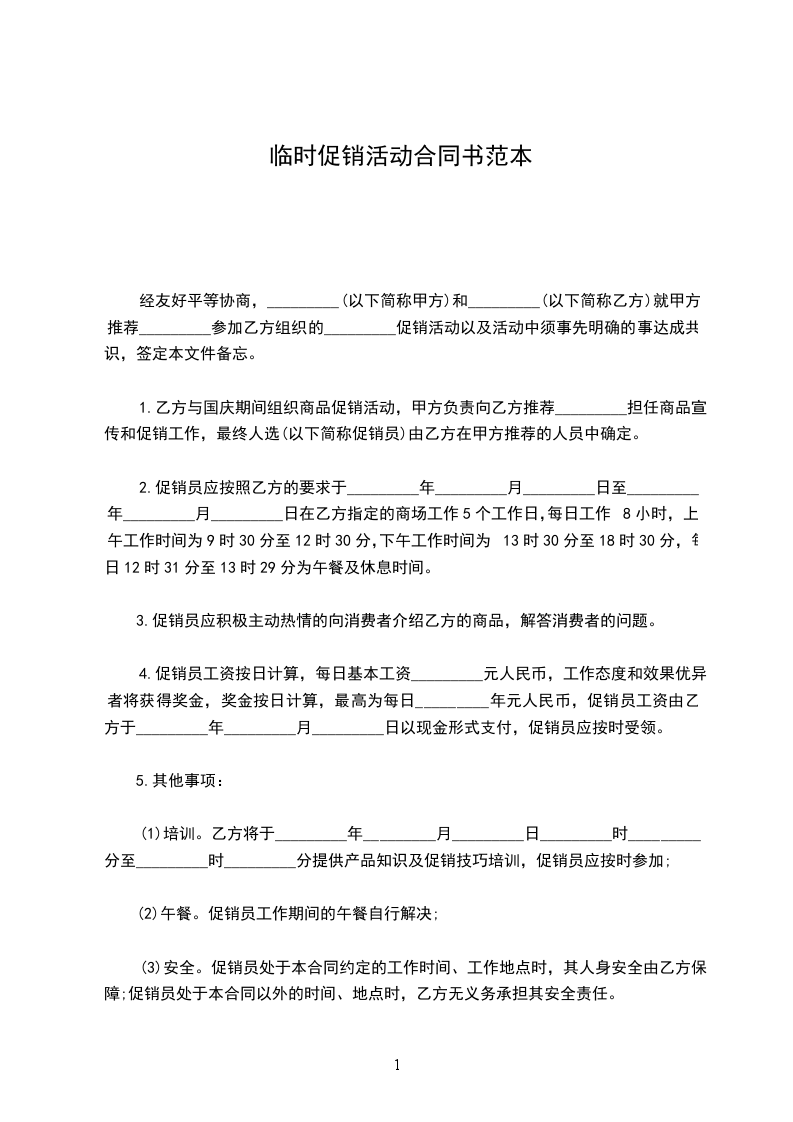 1.乙方与国庆期间组织商品促销活动,甲方负责向乙方推荐_________担任商品宣传和促销工作,最终人选(以下简称促销员)由乙方在甲方推荐的人员中确定。