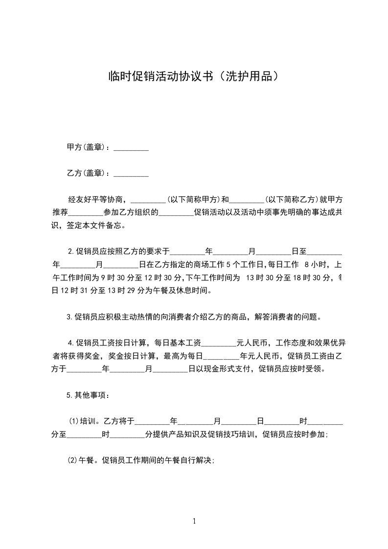 (1)培训。乙方将于_________年_________月_________日_________时_________分至_________时_________分提供产品知识及促销技巧培训,促销员应按时参加;