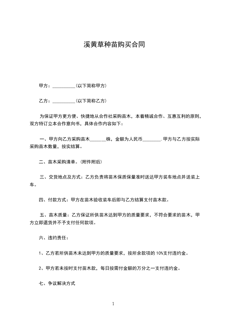 一、甲方向乙方采购苗木_______株,金额为人民币________.甲方与乙方按实际采购苗木数量,按实结算。