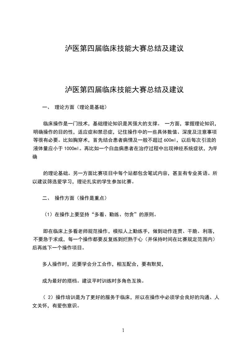 建议向主办方提出选手有1分钟熟悉操作环境的时间,1分钟后再报告评委,xx号准备完毕,请求开始——因为各实习队在平时训练时使用的操作物品及放置等有差别,这样尤其是对外院实习队更公平。(2)操作评分细则,如盆腔检查中,摆体位、窥阴器放置及安置患者各占10%,双合诊占25%。知道操作中得分重点有利于更好的拿得高分。(3)如果条件允许,可以借鉴往届参赛的经验,总结历年比赛项目及常考点,如内科四大穿刺,导尿术等。