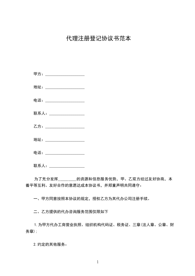 一、甲方同意按照本协议的规定,授权乙方为其代办公司注册手续。
