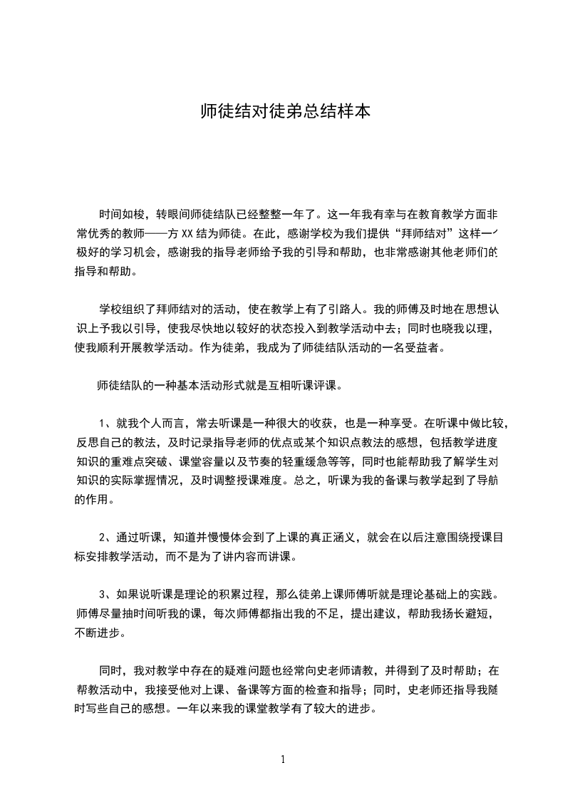 师徒结对徒弟总结 1100字